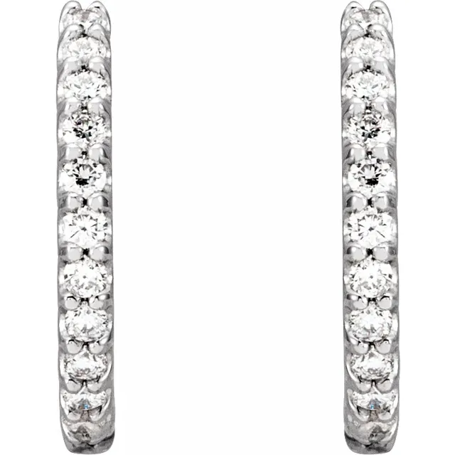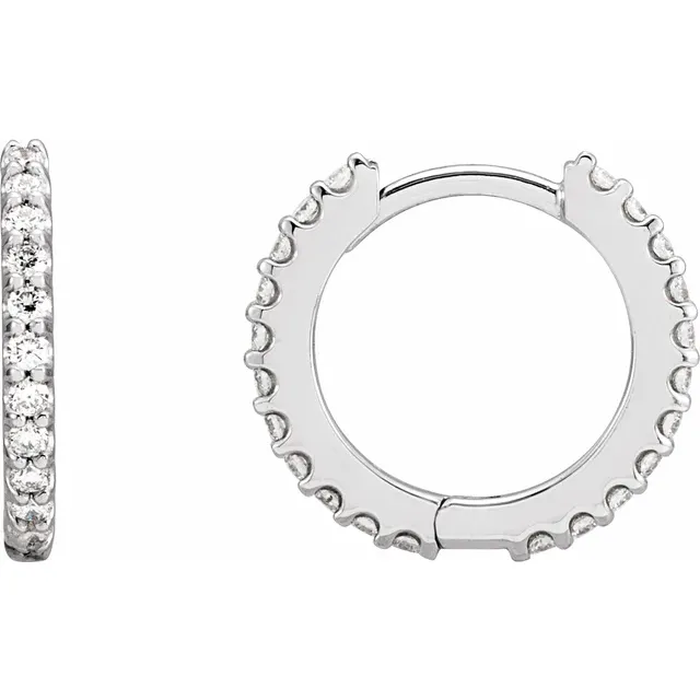 14K White 14 mm 3/8 CTW Natural Diamond Huggie Hoop Earrings