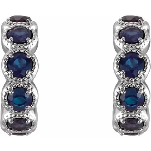 14K White Lab-Grown Blue Sapphire Huggie Earrings
