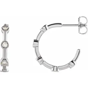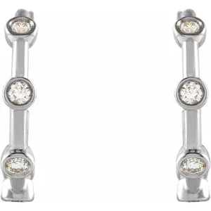 14K White 1/3 CTW Natural Diamond Bezel-Set Hoop Earrings