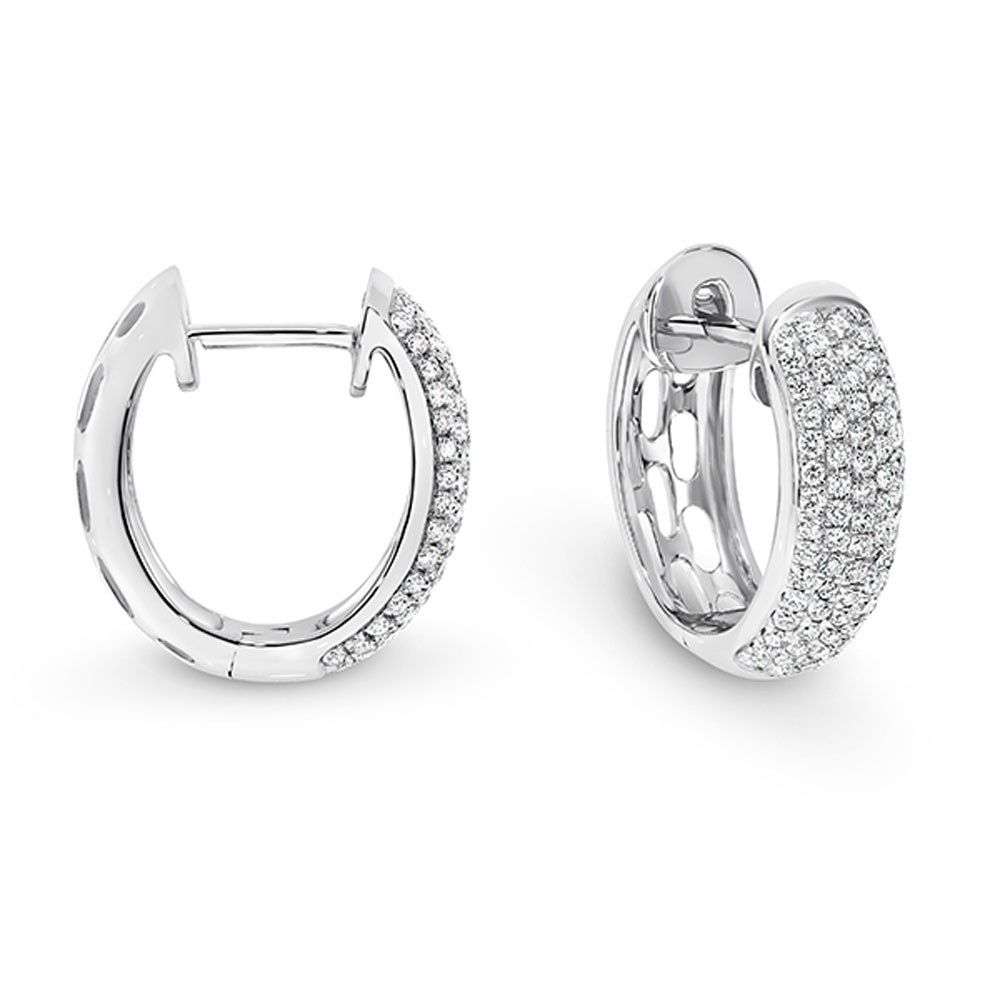 18K White Gold 5 Row Pave Set Diamond Hoop Huggie Earrings