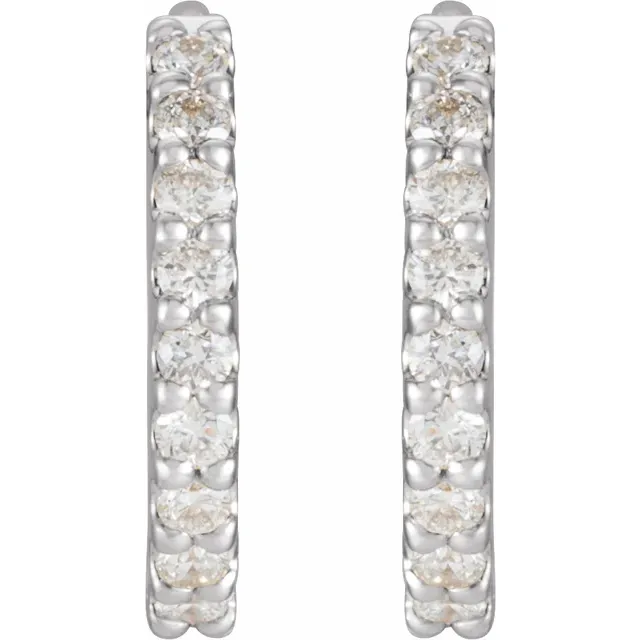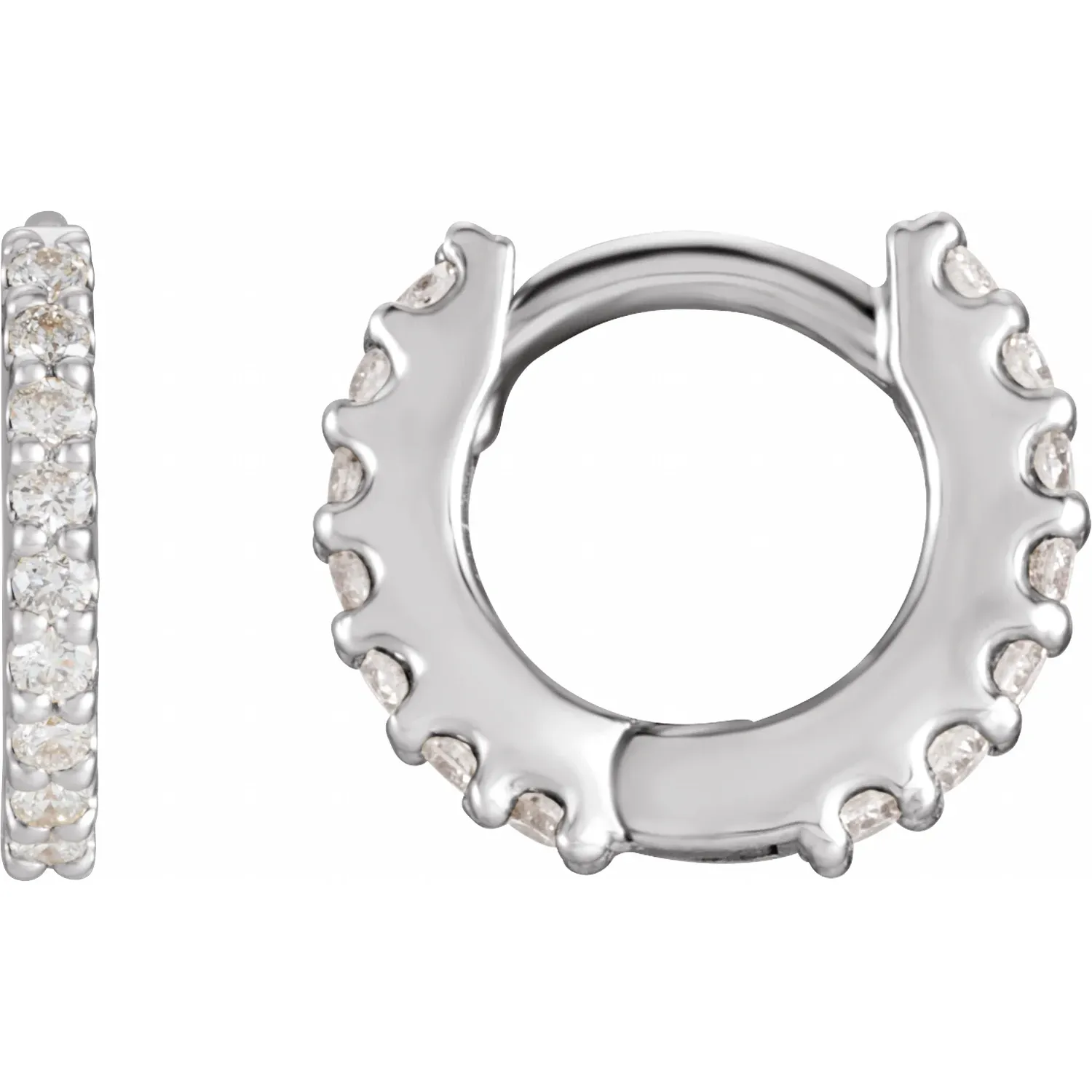 14K White 8 mm 1/8 CTW Natural Diamond Huggie Hoop Earrings