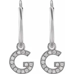 14K White .05 CTW Natural Diamond Single Initial G Hoop Earring