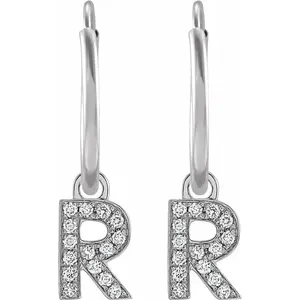 14K White .05 CTW Natural Diamond Single Initial R Hoop Earring
