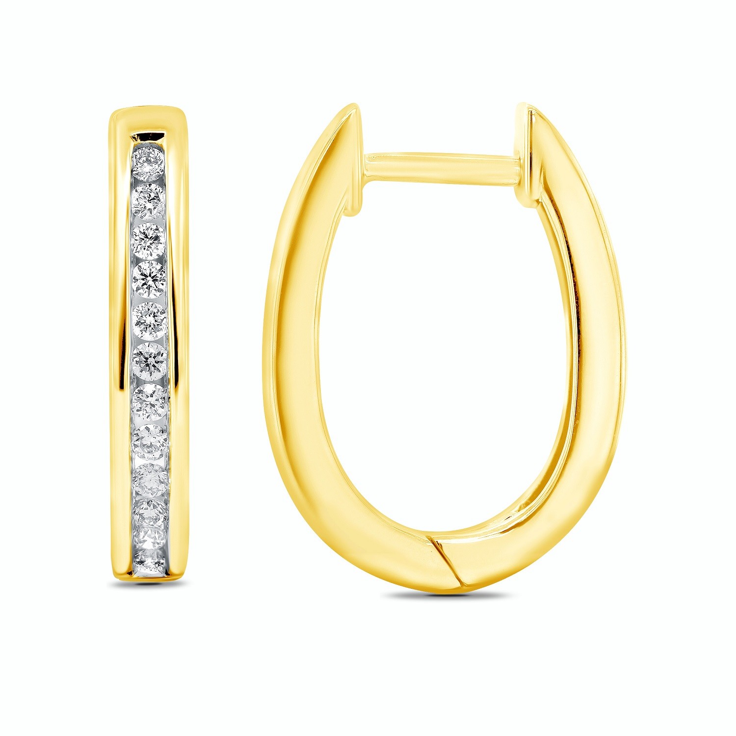 9k Yellow Gold Channel Set Oval Diamond Hoop Earring