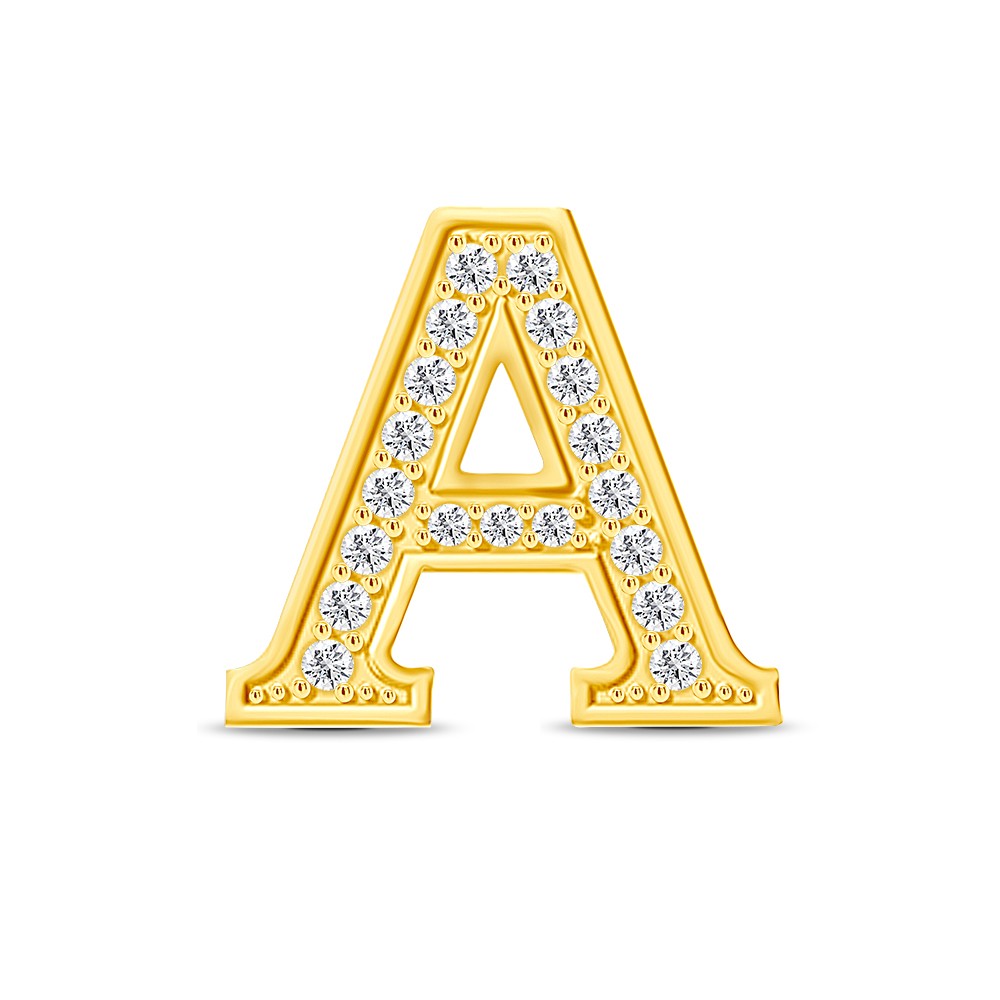 18K Yellow Gold Pave Set Diamond Initial A Pendant Necklace RO- 19=0.19ct GSI