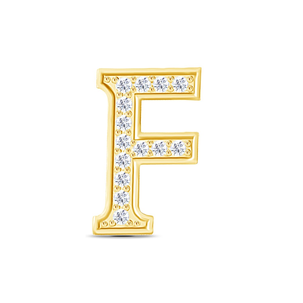 9k Yellow Gold Pave Set Diamond Initial F Pendant Necklace RO=14=0.14ct GSI