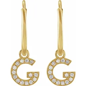 14K Yellow .05 CTW Natural Diamond Single Initial G Hoop Earring