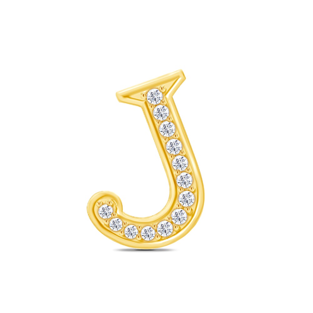 18K Yellow Gold Pave Set Diamond Initial J Pendant Necklace RO- 13=0.12ct GSI
